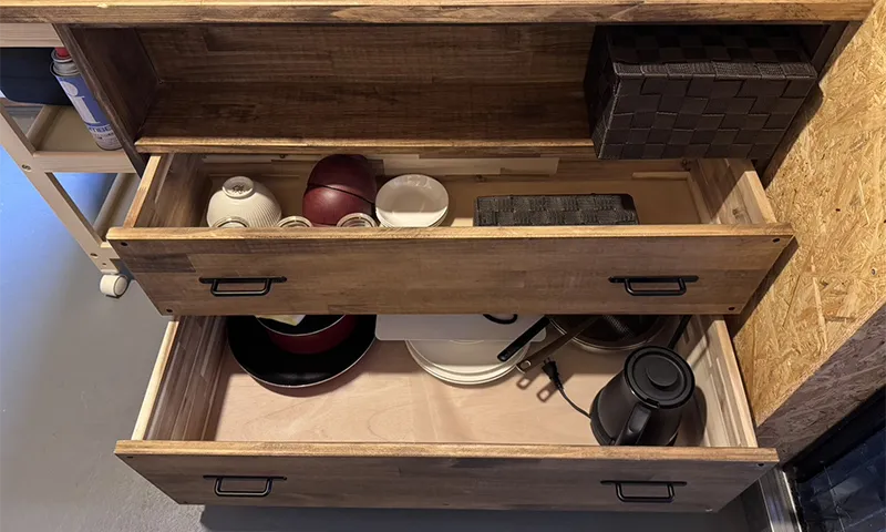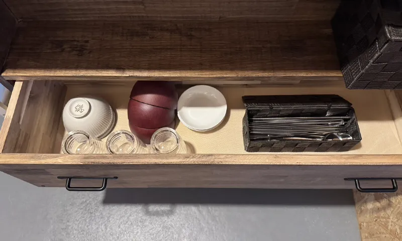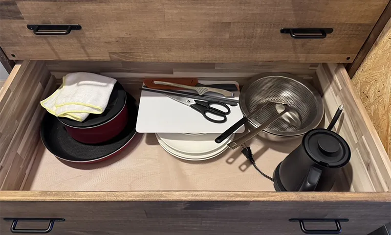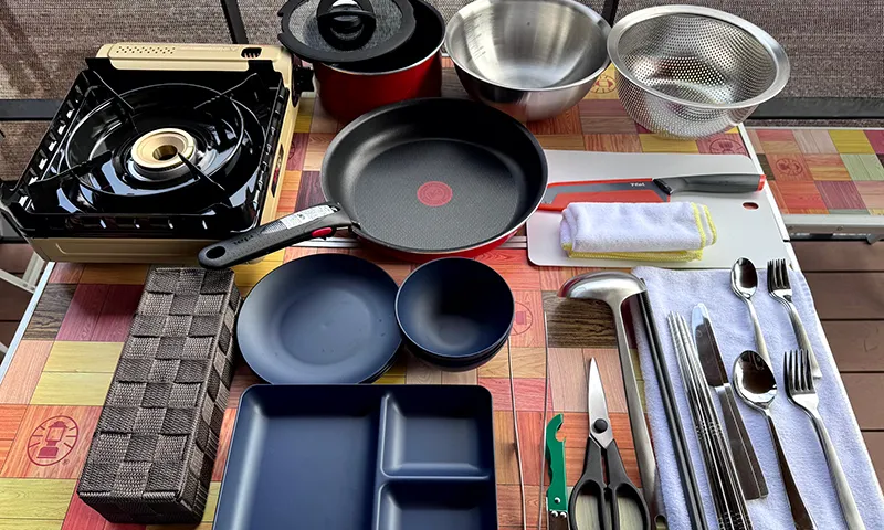| 調理・食器セット | バリュミューダ電子ケトル/ドリップコーヒー/紙コップ/ガラスコップ/カセットガスコンロ/鍋/フライパン/ボール・水切りボール/包丁・まな板/ごはん茶碗・皿・プレート皿/お玉/栓抜き/トング/スプーン/フォーク/ナイフ/はし/洗剤・スポンジ/ |