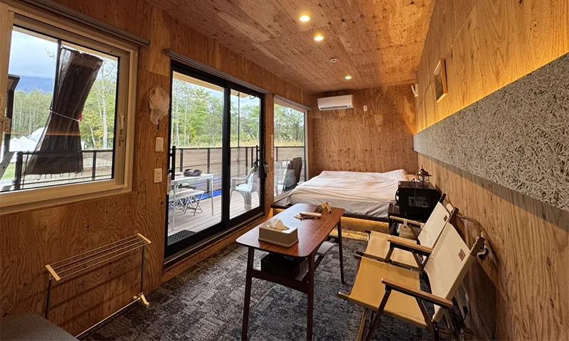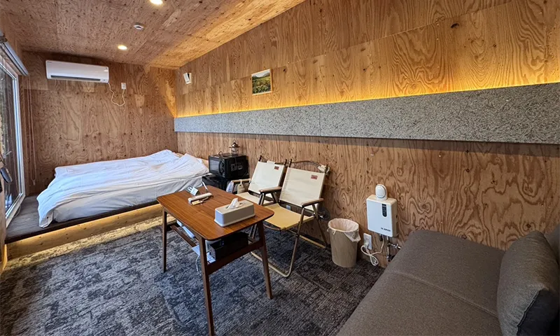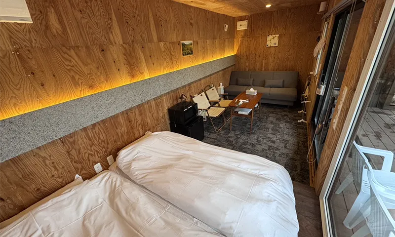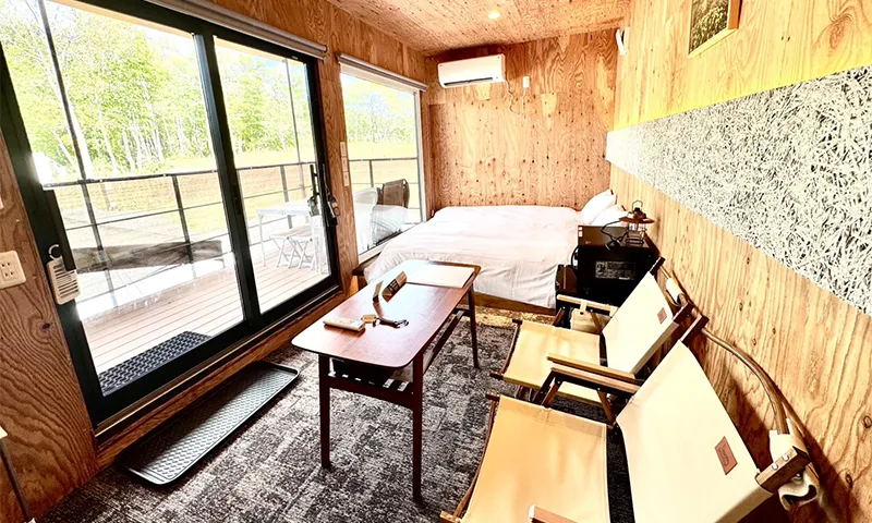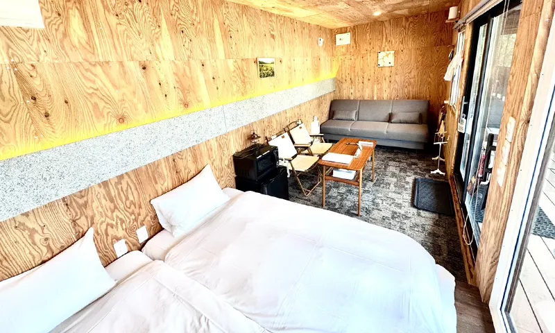| コテージ室内 | シングルベッド2つ ソファーベッド1つ エアコン/FFヒーター/ミニ冷凍・冷蔵庫/電子レンジテーブル/屋内用折り畳みイス3脚/ティッシュ/ミニランタン/ブルートゥーススピーカー/双眼鏡/無線Wi-Fi/ |