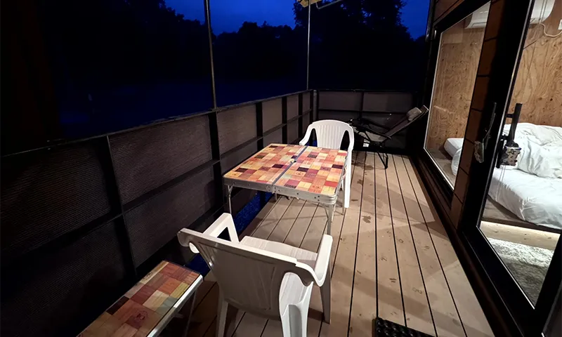 | バルコニー | サウナ用インフィニティチェア1脚/サウナ用イス2脚/サウナ用サンダル(ベランダ専用)/屋外用テーブル/ゴミ箱 |