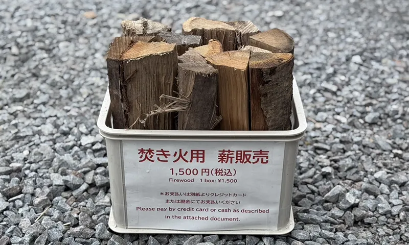 | 有料販売品 | ・追加薪 1ケース1,000円 ※上記は1階バーベキューコーナーにケースに入れてご用意しております。 ・ロウリュウ用エッセンシャルオイル 1本1,500円 ※価格は税込 お支払いはオンラインセルフ販売になっておりますので、お部屋のファイル内にございますQRコードを読み取りクレジットカード決済にてお支払い、またはファイル内にございます現金封筒に代金を入れてチェックアウト時はテーブルの上に置いてください、無断持ち出しはご遠慮ください。 |