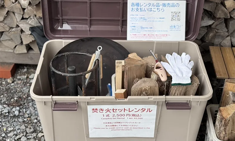 | 有料レンタル品 | ・サウナ用ガウンレンタル 1着 1,000円 ・バーベキューコンロセットレンタル 1式 3,500円 (網・炭3㎏・着火剤・トング・うちわ・軍手・ライター付き) ・焚火セットレンタル 1式 2,500円 (焚火台・薪1ケース・着火剤・トング・軍手・ライター付き) |