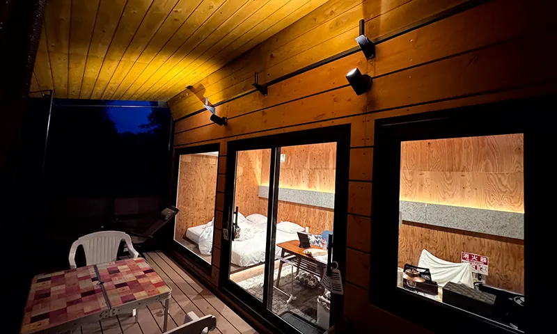 | コテージ室内 | シングルベッド2つ ソファーベッド1つ エアコン/FFヒーター/ミニ冷凍・冷蔵庫/電子レンジテーブル/屋内用折り畳みイス3脚/ティッシュ/ミニランタン/ブルートゥーススピーカー/双眼鏡/無線Wi-Fi/ |